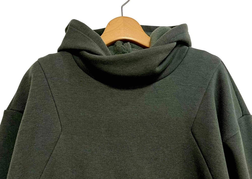 衿元は窮屈すぎないゆとりのあるハイネックで