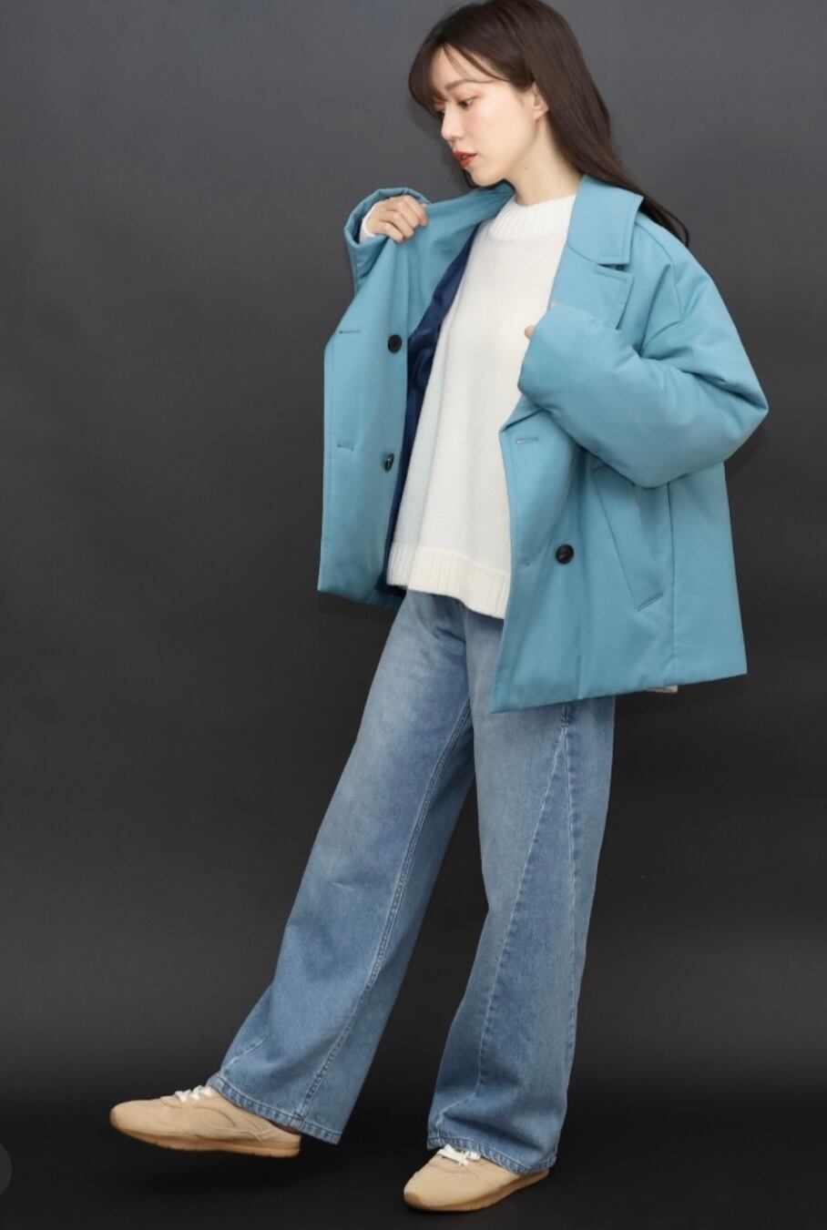 上質感あふれるダブルコートです。
