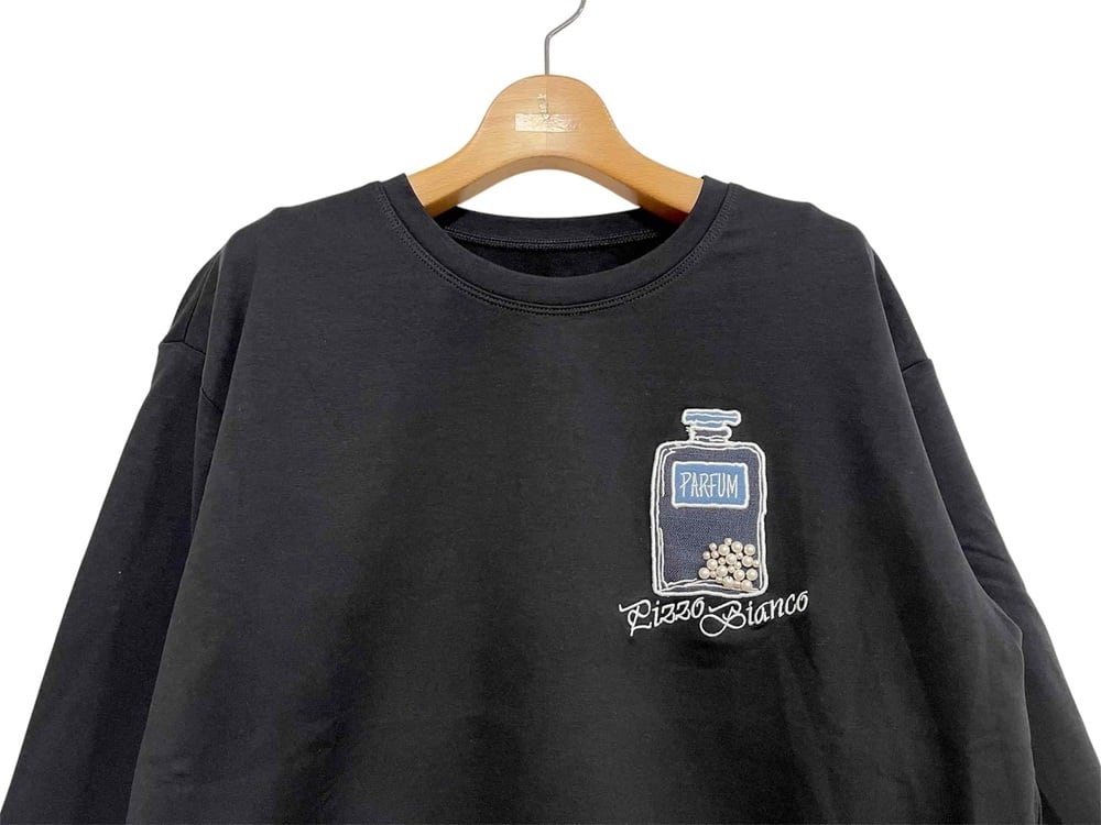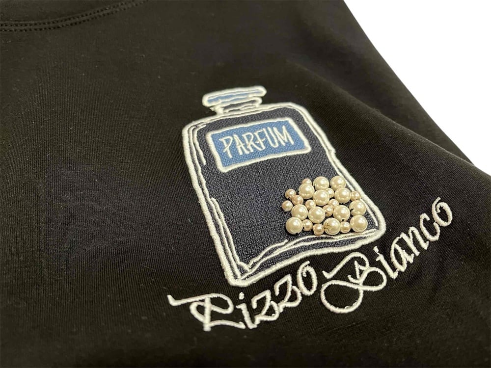 胸の香水瓶モチーフは