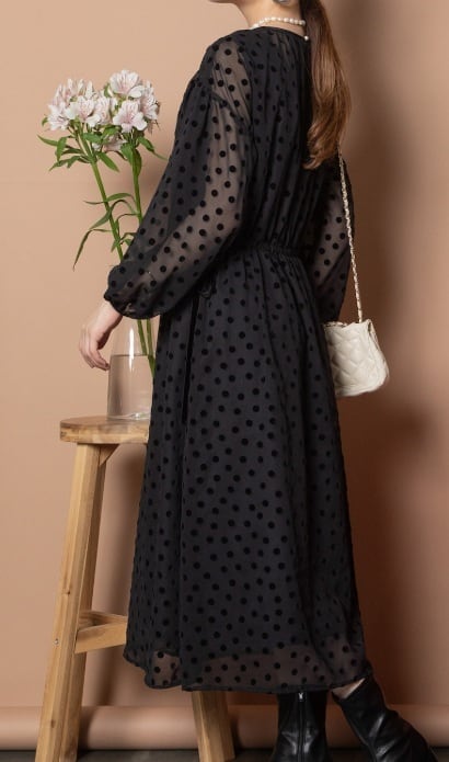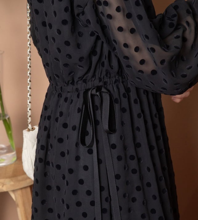 ドットフロッキー柄のワンピース。
