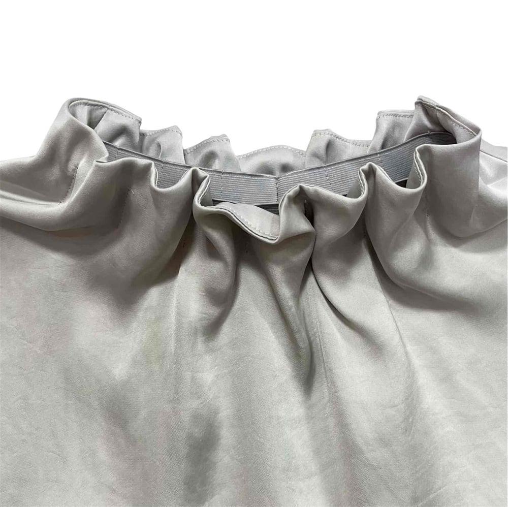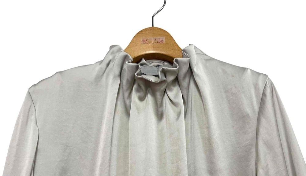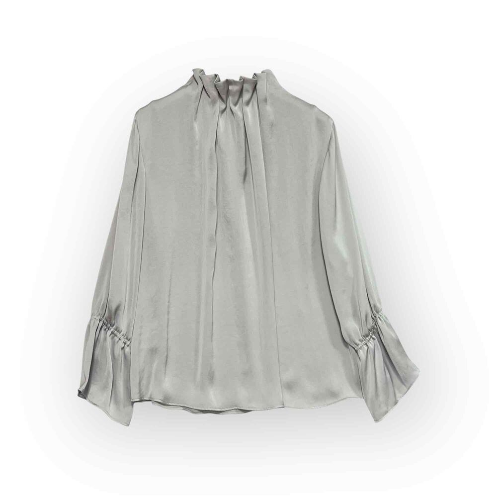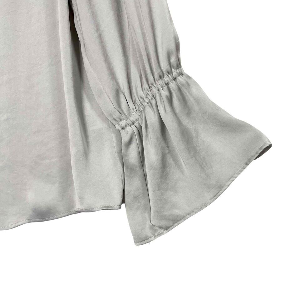 上品なツヤ感と首元のギャザーがポイントの