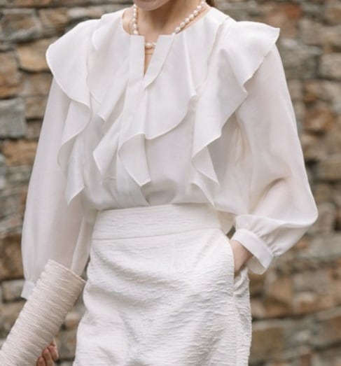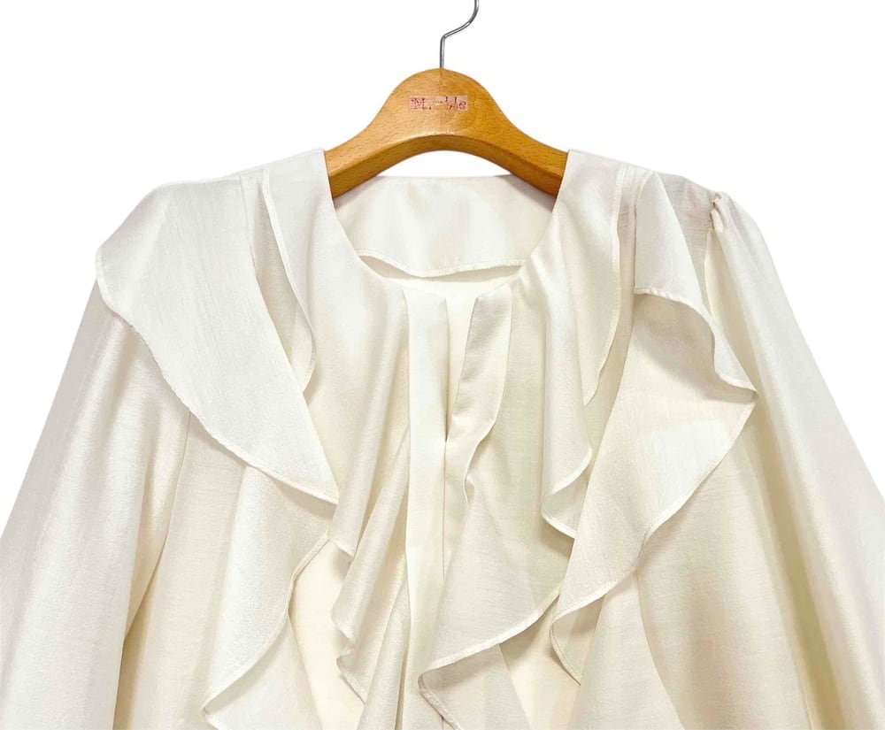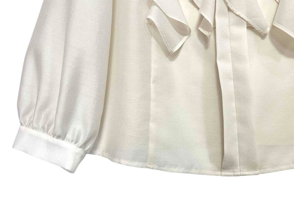 オープンカラーに袖口ギャザーも