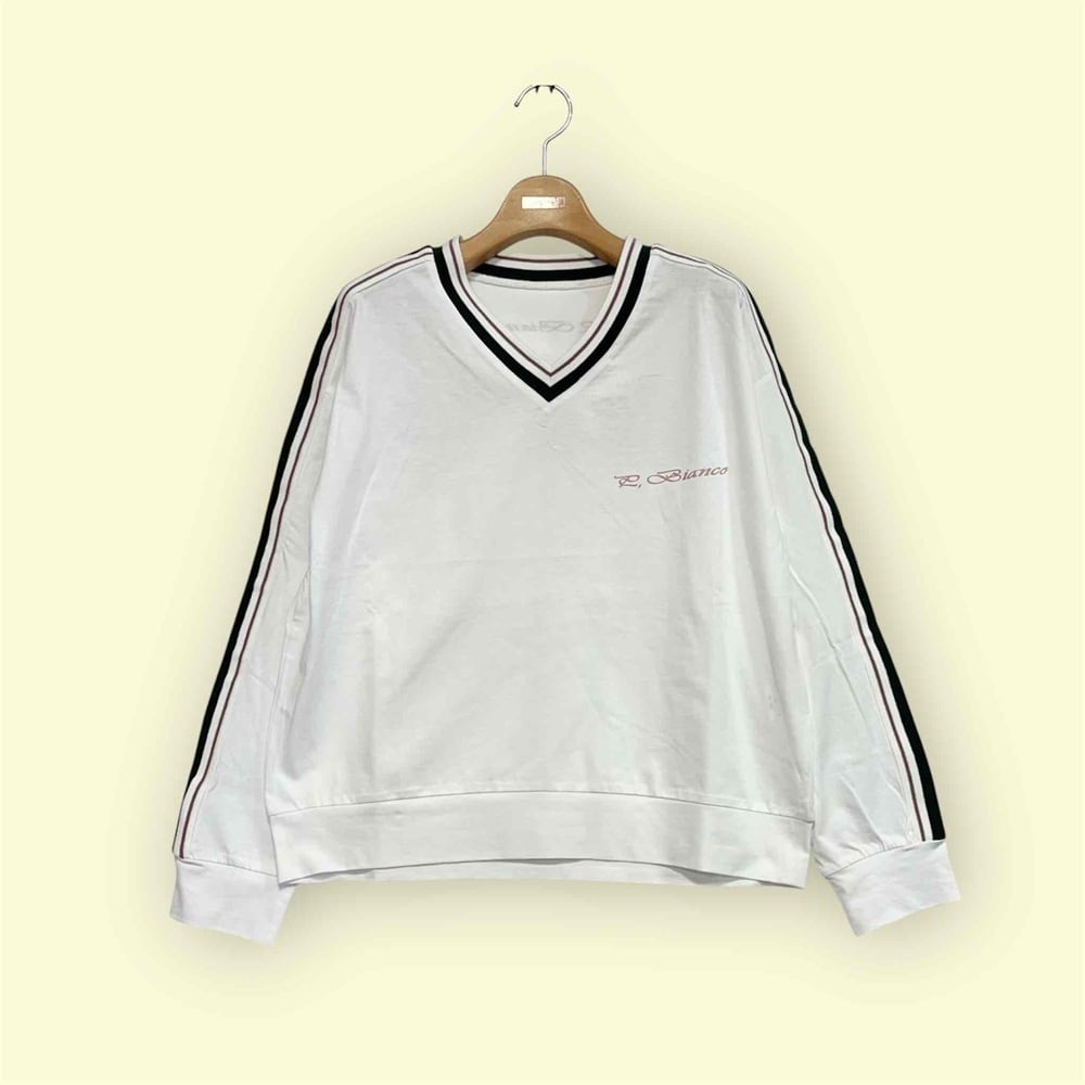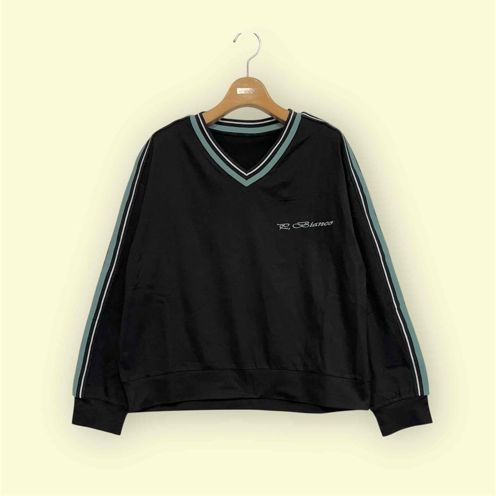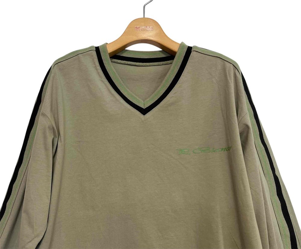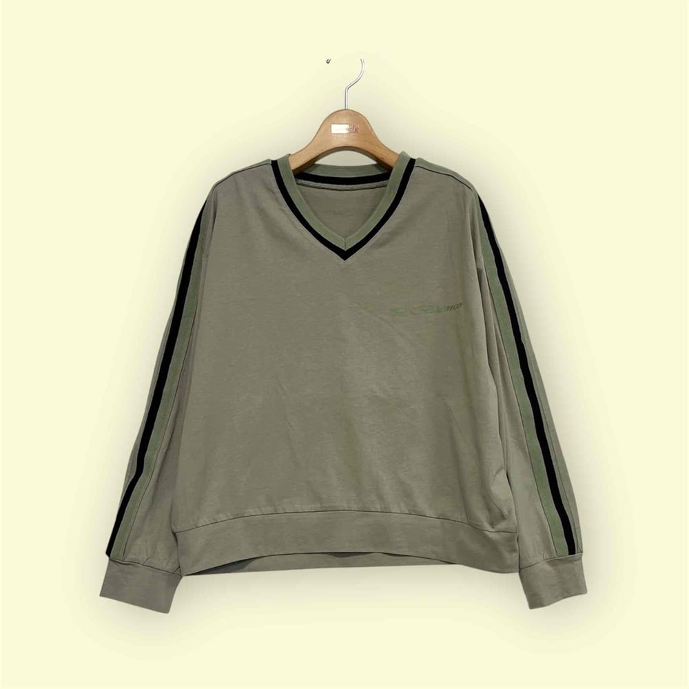 Vネック長袖プルオーバー。