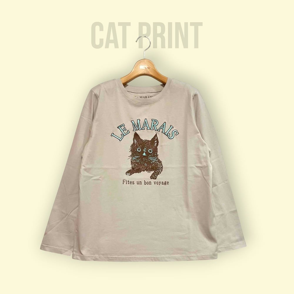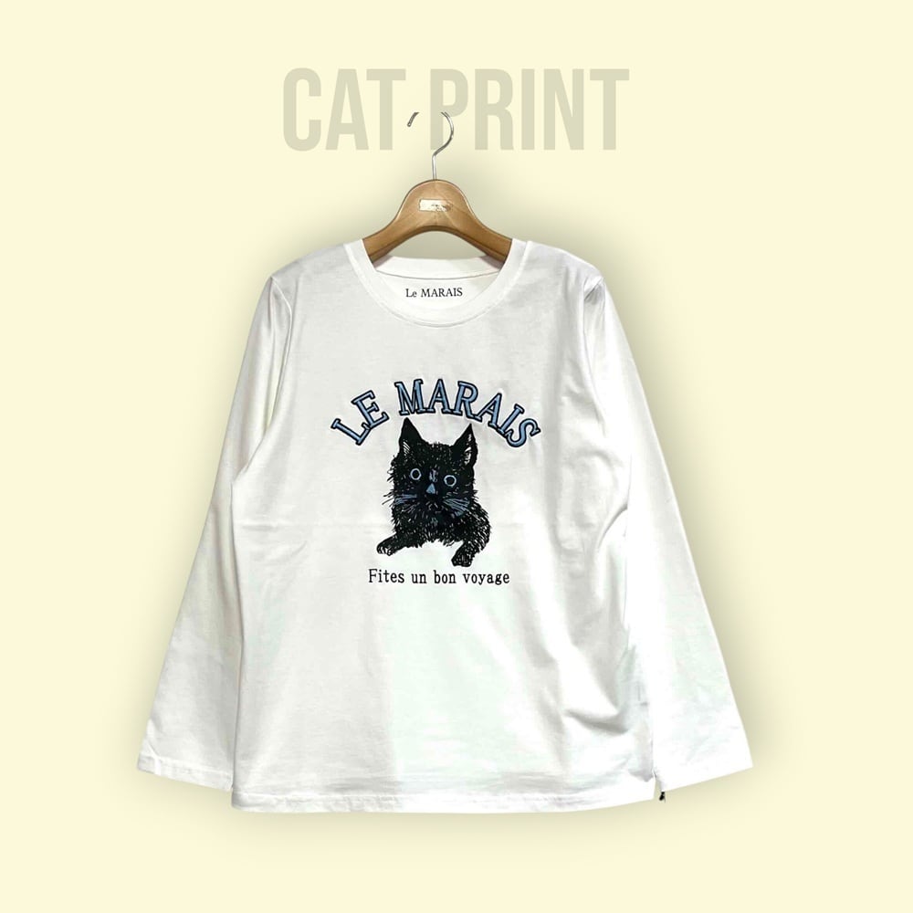 猫プリントのロンTEE。