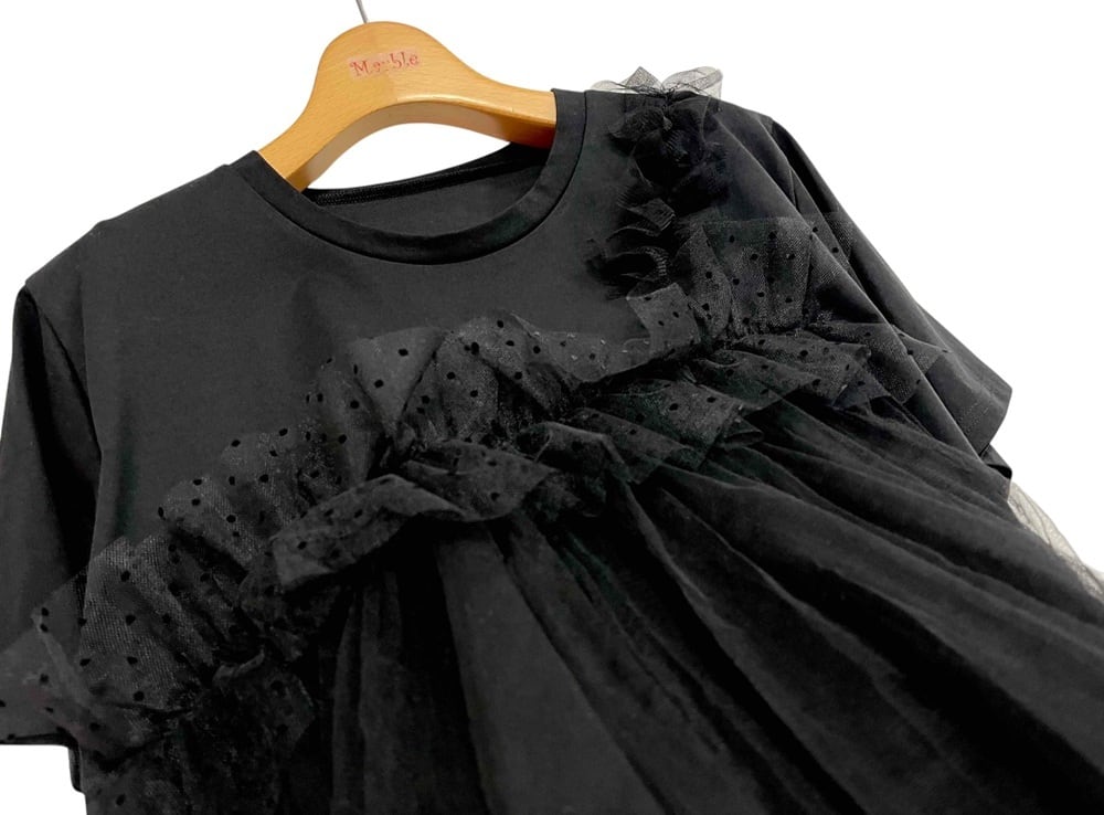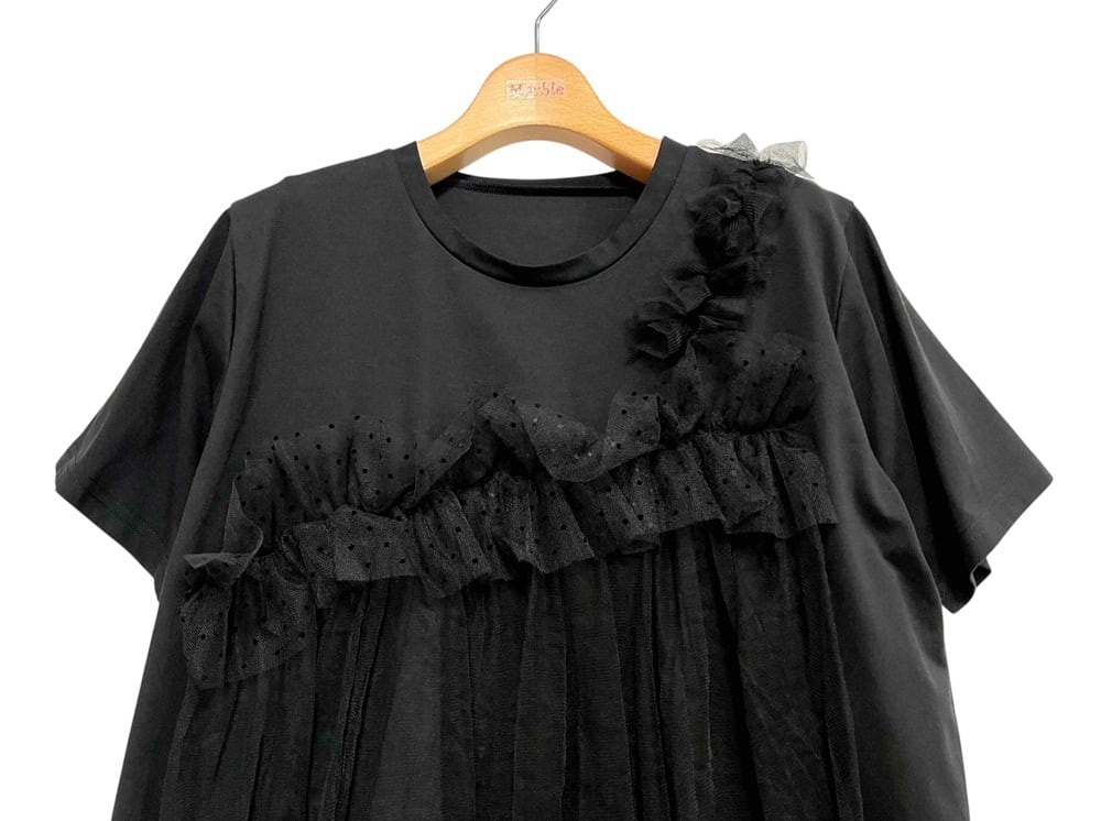 チュールフリル半袖Tシャツ