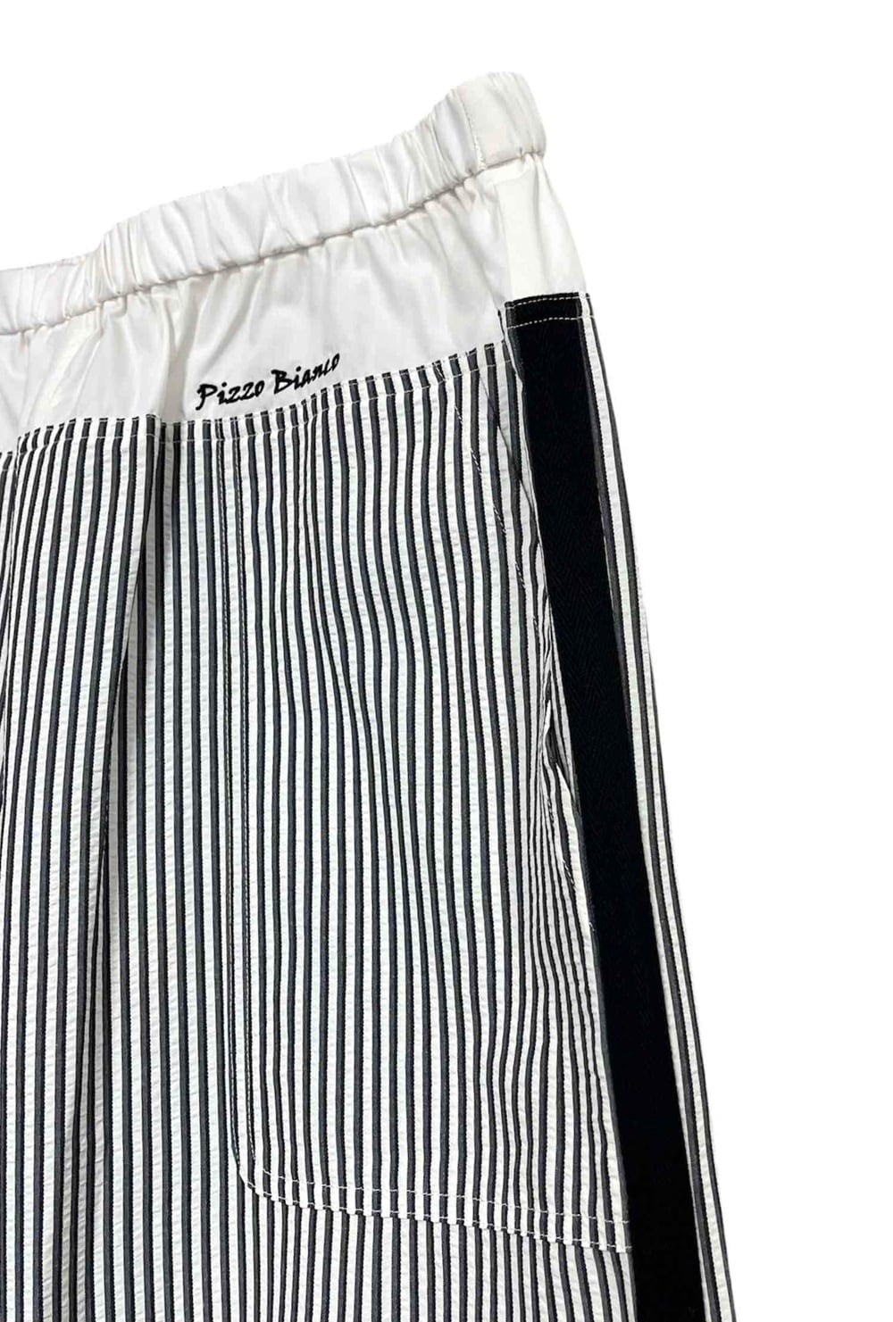 ウエストの無地部分にブランドネームの刺繍、